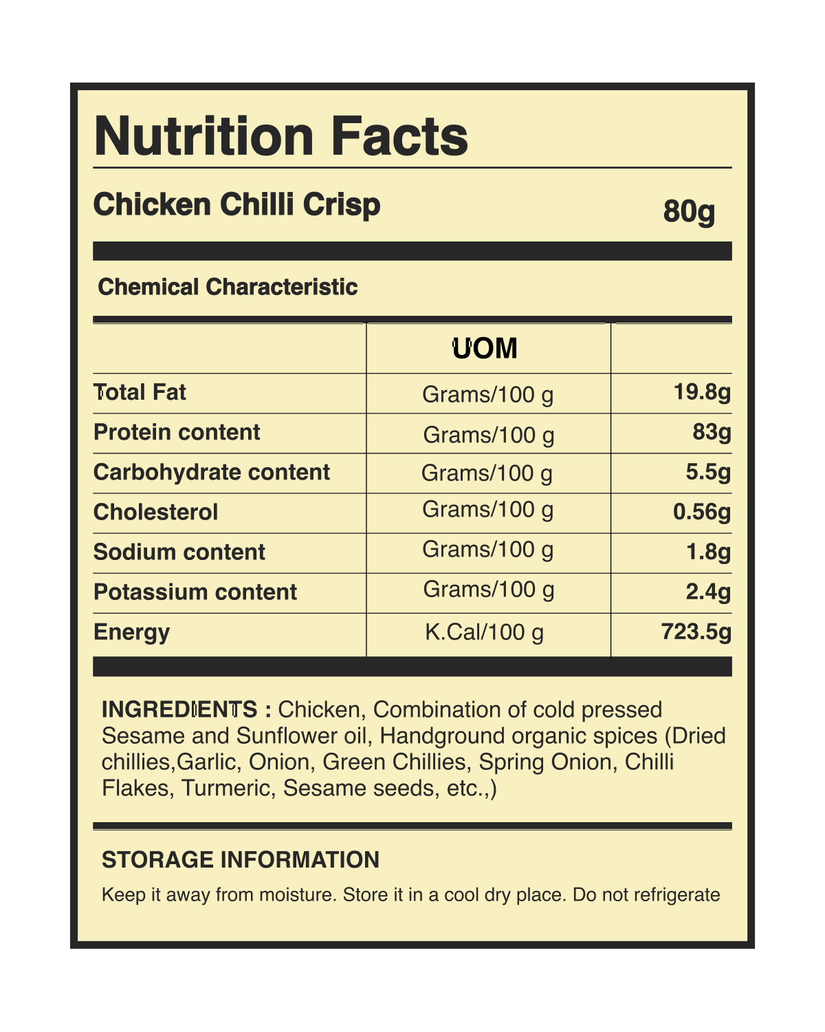 - Chicken Chilli Crisp – Authentic, fiery chili oil infused with crispy chicken pieces.