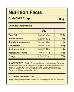 - Crab Chilli Crisp – Authentic, fiery chilli oil infused with crispy crab pieces.