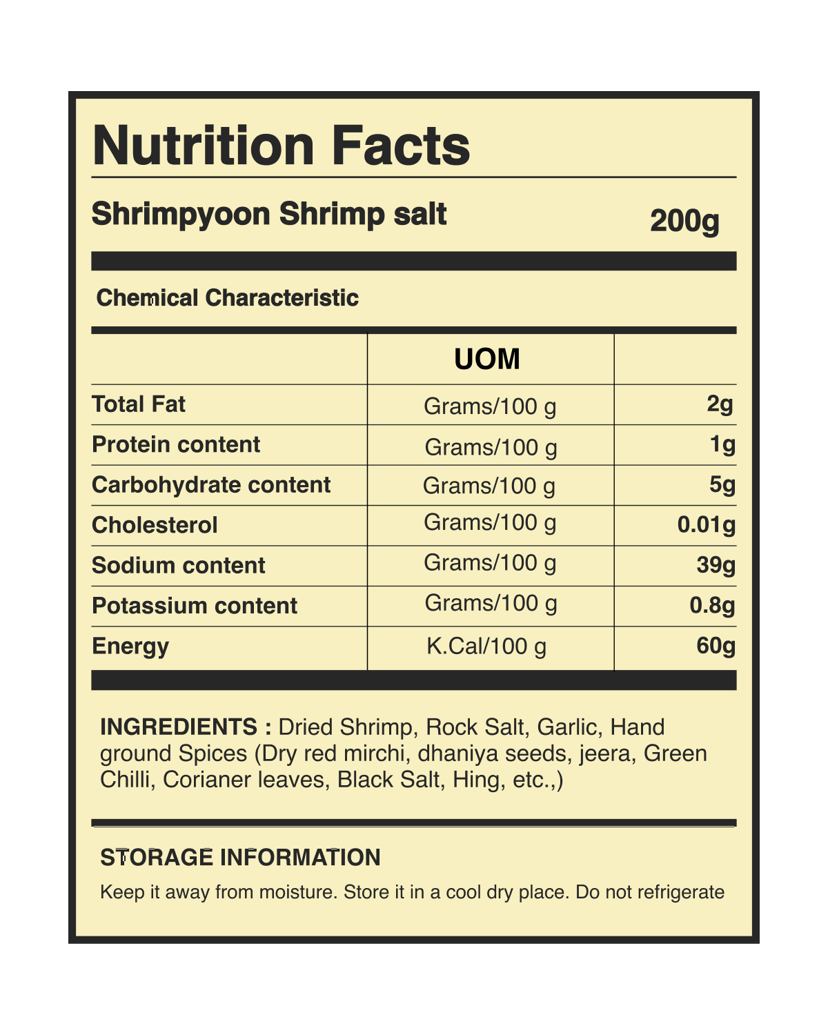 - This Shrimpyoon Jar holds unto 200 grams of Shrimp Salt